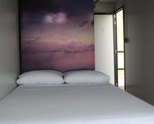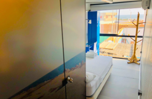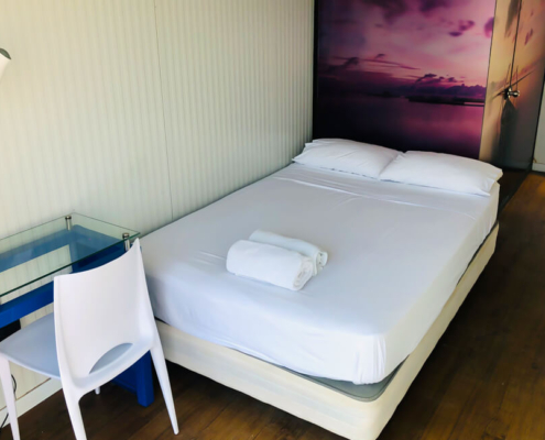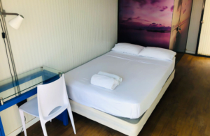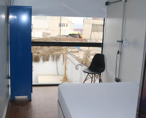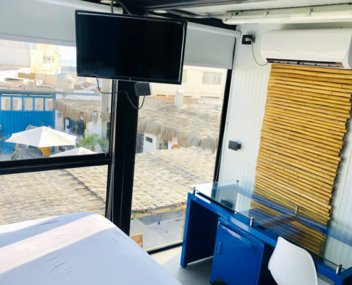 | Cama tipo matrimonial de 2 plazas. Ideal para 2 personas. Cuenta con baño privado, agua caliente, aire acondicionado y WIFI. Habitación en el 2° nivel con vista al mar. |